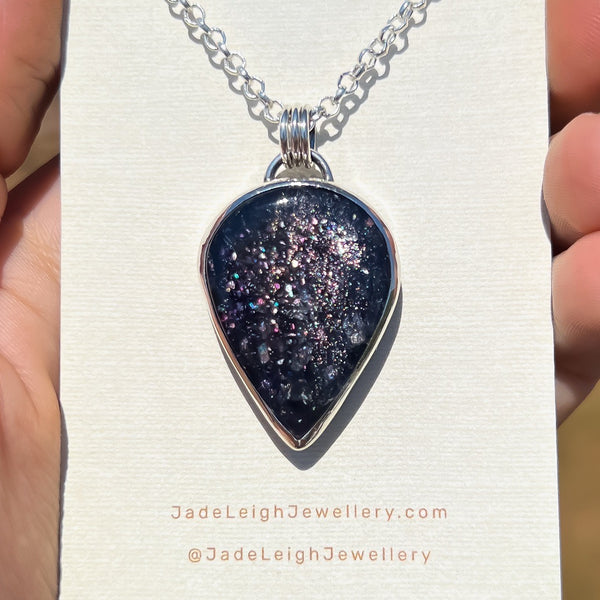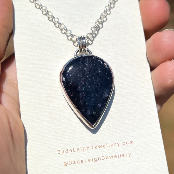 Statement sterling silver ACOTAR inspired sunstone iolite necklace.